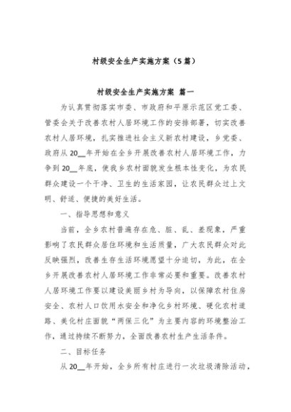 / 【七哥公文】2024年:(5篇)村级安全生产实施方案+更多免费公文+VX:QiGeGongWen2024