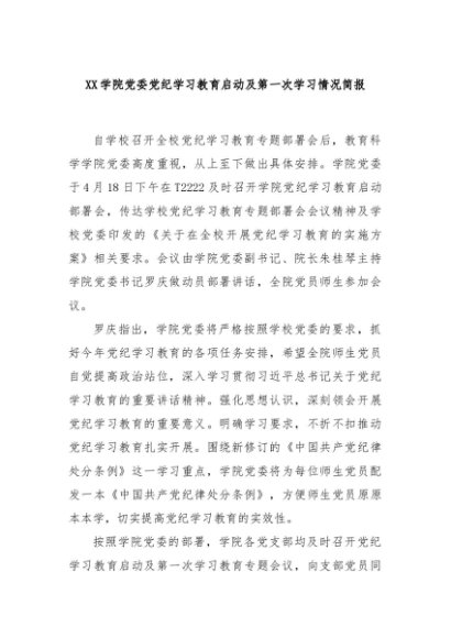 / 【七哥公文】2024年:XX学院党委党纪学习教育启动及第一次学习情况简报+更多免费公文+VX:QiGeGongWen2024