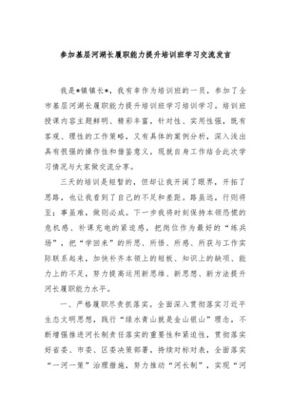 / 【七哥公文】2024年:参加基层河湖长履职能力提升培训班学习交流发言+更多免费公文+VX:QiGeGongWen2024