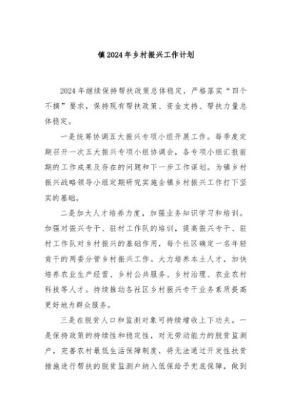 / 【七哥公文】2024年:镇2024年乡村振兴工作计划+更多免费公文+VX:QiGeGongWen2024
