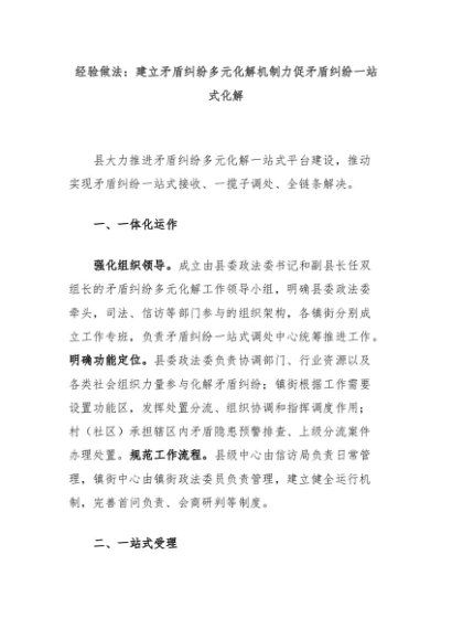 【七哥公文】2024年:经验做法:建立矛盾纠纷多元化解机制力促矛盾纠纷一站式化解+更多免费公文+VX:QiGeGongWen2024