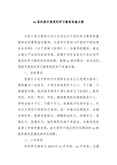 / 【七哥公文】2024年:xx县纪委开展党纪学习教育实施方案+更多免费公文+VX:QiGeGongWen2024