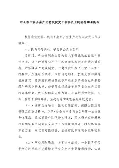 【七哥公文】2024年:市长在市安全生产及防灾减灾工作会议上的安排部署提纲+更多免费公文+VX:QiGeGongWen2024