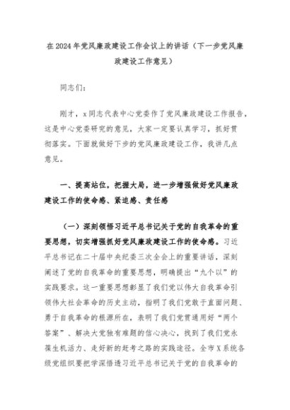 【七哥公文】2024年:在2024年党风廉政建设工作会议上的讲话(下一步党风廉政建设工作意见)+更多免费公文+VX:QiGeGongWen2024