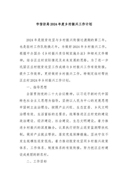 / 【七哥公文】2024年:市信访局2024年度乡村振兴工作计划+更多免费公文+VX:QiGeGongWen2024