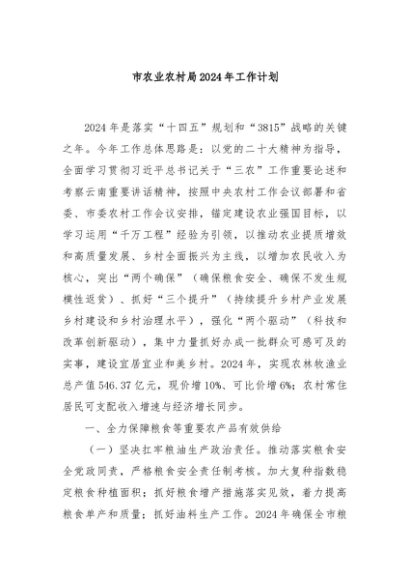 / 【七哥公文】2024年:市农业农村局2024年工作计划+更多免费公文+VX:QiGeGongWen2024