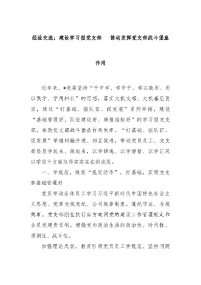 【七哥公文】2024年:经验交流:建设学习型党支部 推动发挥党支部战斗堡垒作用+更多免费公文+VX:QiGeGongWen2024