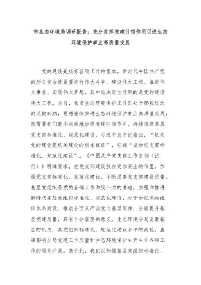 【七哥公文】2024年:市生态环境局调研报告:充分发挥党建引领作用促进生态环境保护事业高质量发展+更多免费公文+VX:QiGeGongWen2024