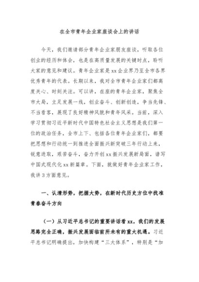/ 【七哥公文】2024年:在全市青年企业家座谈会上的讲话+更多免费公文+VX:QiGeGongWen2024