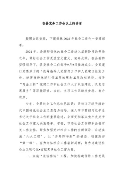 / 【七哥公文】2024年:在县党务工作会议上的讲话+更多免费公文+VX:QiGeGongWen2024