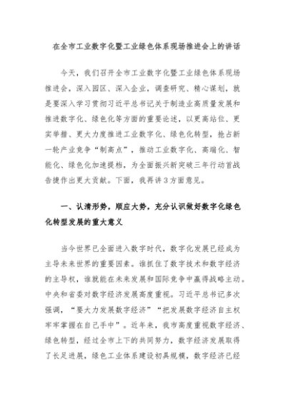 / 【七哥公文】2024年:在全市工业数字化暨工业绿色体系现场推进会上的讲话+更多免费公文+VX:QiGeGongWen2024