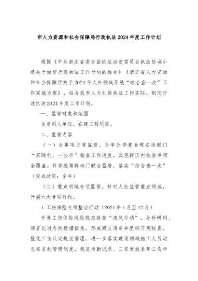 【七哥公文】2024年:市人力资源和社会保障局行政执法2024年度工作计划+更多免费公文+VX:QiGeGongWen2024