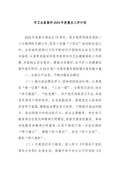 / 【七哥公文】2024年:市卫生监督所2024年度重点工作计划+更多免费公文+VX:QiGeGongWen2024