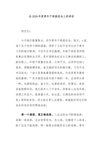 / 【七哥公文】2024年:在2024年度青年干部座谈会上的讲话+更多免费公文+VX:QiGeGongWen2024