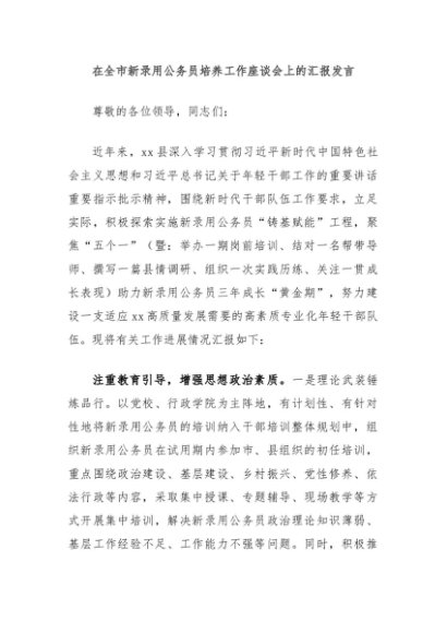 / 【七哥公文】2024年:在全市新录用公务员培养工作座谈会上的汇报发言+更多免费公文+VX:QiGeGongWen2024