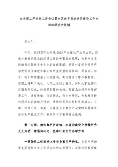 【七哥公文】2024年:在全面从严治党工作会议暨全区教育系统党的建设工作全面梳理讲话提纲+更多免费公文+VX:QiGeGongWen2024