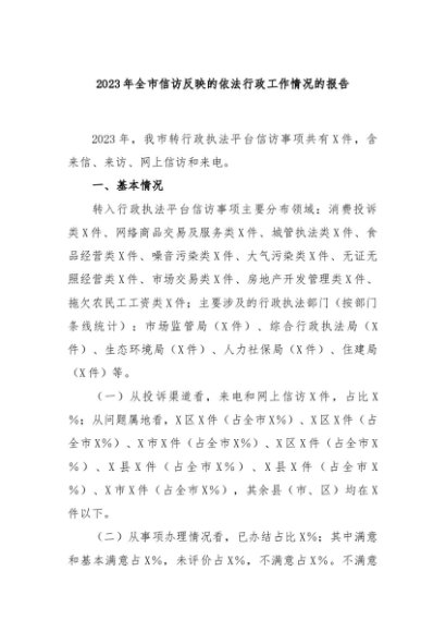 / 【七哥公文】2024年:2023年全市信访反映的依法行政工作情况的报告+更多免费公文+VX:QiGeGongWen2024