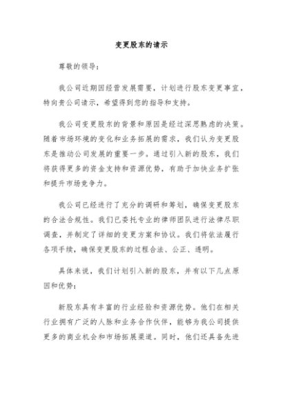 / 【七哥公文】2024年:变更股东的请示+更多免费公文+VX:QiGeGongWen2024