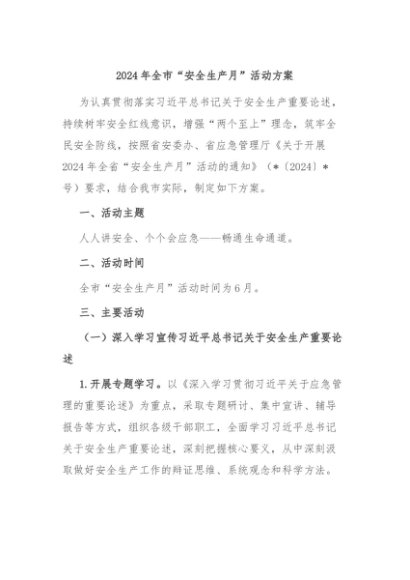 / 【七哥公文】2024年:2024年全市“安全生产月”活动方案+更多免费公文+VX:QiGeGongWen2024