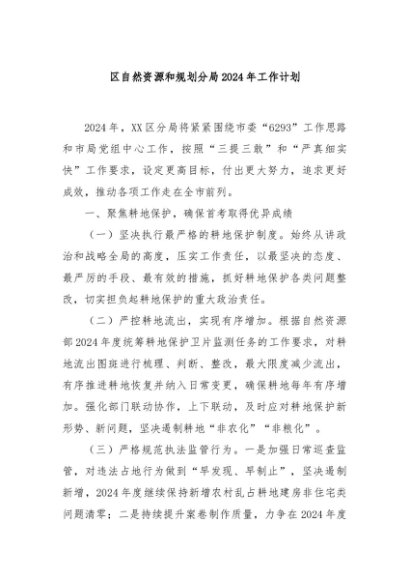 / 【七哥公文】2024年:区自然资源和规划分局2024年工作计划+更多免费公文+VX:QiGeGongWen2024