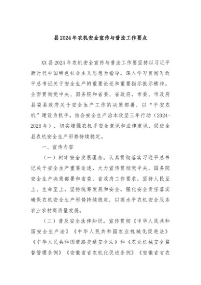 / 【七哥公文】2024年:县2024年农机安全宣传与普法工作要点+更多免费公文+VX:QiGeGongWen2024