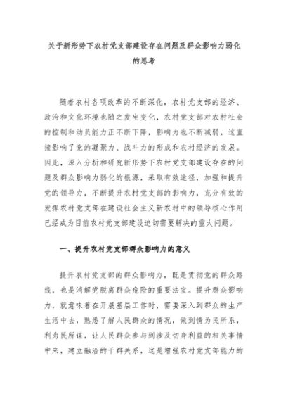 【七哥公文】2024年:关于新形势下农村党支部建设存在问题及群众影响力弱化的思考+更多免费公文+VX:QiGeGongWen2024