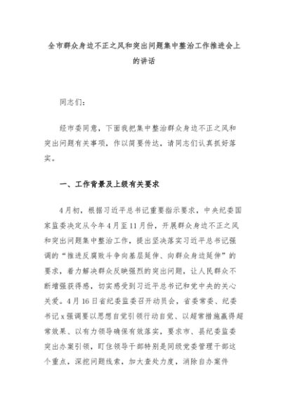 【七哥公文】2024年:全市群众身边不正之风和突出问题集中整治工作推进会上的讲话+更多免费公文+VX:QiGeGongWen2024