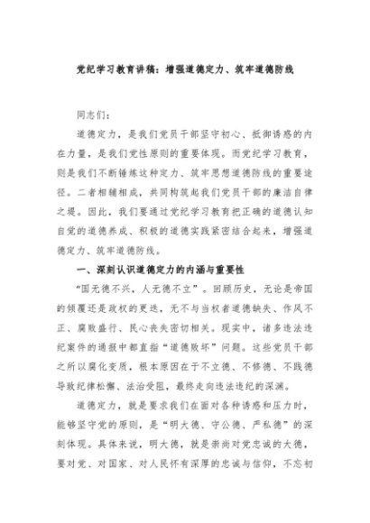 / 【七哥公文】2024年:党纪学习教育讲稿:增强道德定力、筑牢道德防线+更多免费公文+VX:QiGeGongWen2024