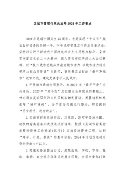 / 【七哥公文】2024年:区城市管理行政执法局2024年工作要点+更多免费公文+VX:QiGeGongWen2024