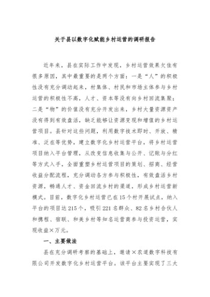 / 【七哥公文】2024年:关于县以数字化赋能乡村运营的调研报告+更多免费公文+VX:QiGeGongWen2024