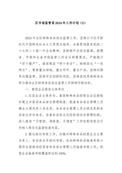 / 【七哥公文】2024年:区市场监管局2024年工作计划(2)+更多免费公文+VX:QiGeGongWen2024