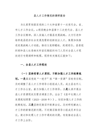 / 【七哥公文】2024年:县人才工作情况的调研报告+更多免费公文+VX:QiGeGongWen2024