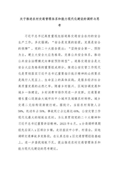 【七哥公文】2024年:关于推进农村交通管理体系和能力现代化建设的调研与思考+更多免费公文+VX:QiGeGongWen2024