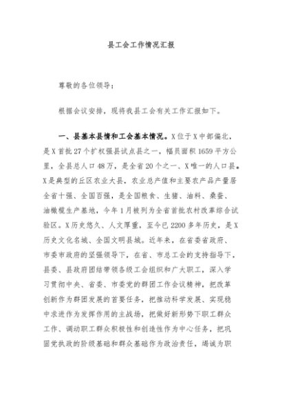 / 【七哥公文】2024年:县工会工作情况汇报+更多免费公文+VX:QiGeGongWen2024