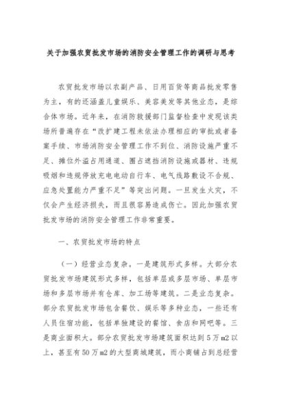 【七哥公文】2024年:关于加强农贸批发市场的消防安全管理工作的调研与思考+更多免费公文+VX:QiGeGongWen2024