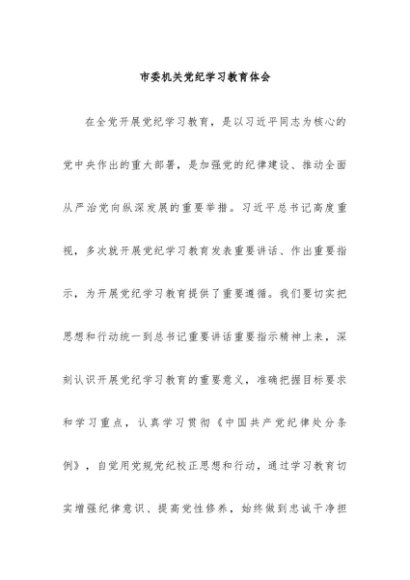 / 【七哥公文】2024年:市委机关党纪学习教育体会+更多免费公文+VX:QiGeGongWen2024