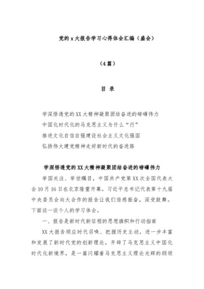 / 【七哥公文】2024年:(4篇)党的x大报告学习心得体会汇编(盛会)+更多免费公文+VX:QiGeGongWen2024