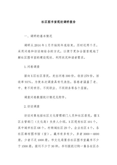 / 【七哥公文】2024年:社区图书室现状调研报告+更多免费公文+VX:QiGeGongWen2024