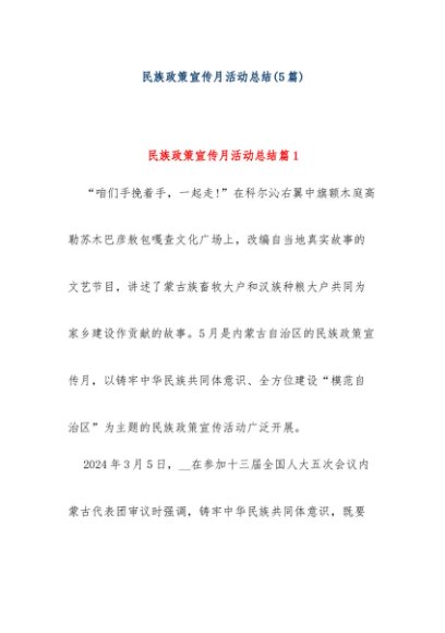 【七哥公文】2024年:(5篇)民族政策宣传月活动总结+更多免费公文+VX:QiGeGongWen2024