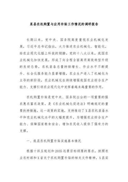 / 【七哥公文】2024年:某县农机购置与应用补贴工作情况的调研报告+更多免费公文+VX:QiGeGongWen2024