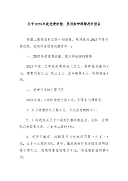 / 【七哥公文】2024年:关于2023年度党费收缴、使用和管理情况的报告+更多免费公文+VX:QiGeGongWen2024