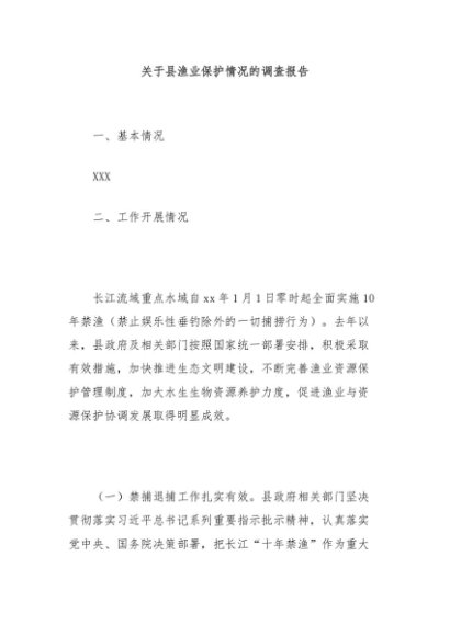 【七哥公文】2024年:关于县渔业保护情况的调查报告+更多免费公文+VX:QiGeGongWen2024