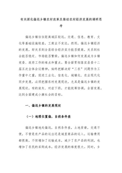 【七哥公文】2024年:有关深化偏远乡镇农村改革及推动农村经济发展的调研思考+更多免费公文+VX:QiGeGongWen2024