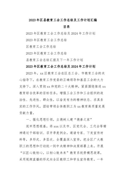 / 【七哥公文】2024年:2023年区县教育工会工作总结及工作计划汇编+更多免费公文+VX:QiGeGongWen2024