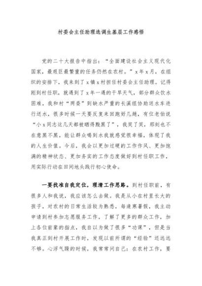 / 【七哥公文】2024年:村委会主任助理选调生基层工作感悟+更多免费公文+VX:QiGeGongWen2024