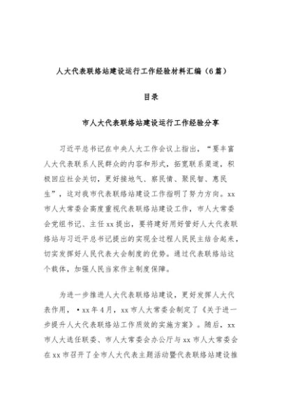 / 【七哥公文】2024年:(6篇)人大代表联络站建设运行工作经验材料汇编+更多免费公文+VX:QiGeGongWen2024