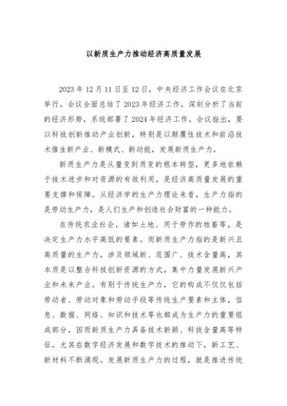 【七哥公文】2024年:以新质生产力推动经济高质量发展+更多免费公文+VX:QiGeGongWen2024