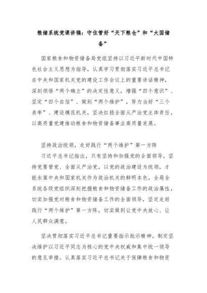 【七哥公文】2024年:粮储系统党课讲稿:守住管好“天下粮仓”和“大国储备”+更多免费公文+VX:QiGeGongWen2024