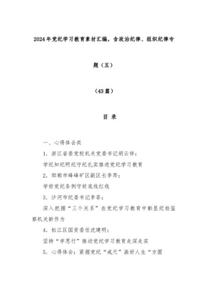 【七哥公文】2024年:(43篇)2024年党纪学习教育素材汇编,含政治纪律、组织纪律专题(五)+更多免费公文+VX:QiGeGongWen2024