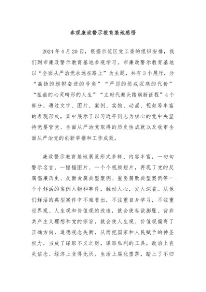 【七哥公文】2024年:参观廉政警示教育基地感悟+更多免费公文+VX:QiGeGongWen2024
